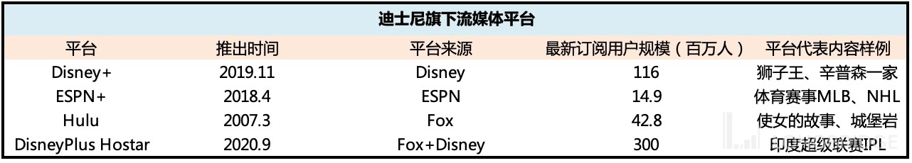 c、ESPN+:由早年收购的 ESPN,于 2018 年推出流媒体平台。