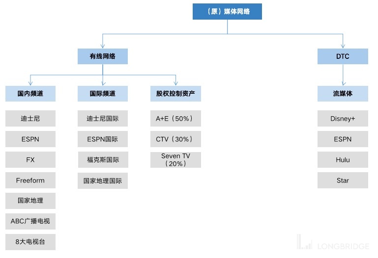 迪士尼的媒体网络业务,是指将旗下作品以及授权的第三方作品在电视、广播等媒体平台上面向用户播放(类似电视、长视频等作品播放平台)。