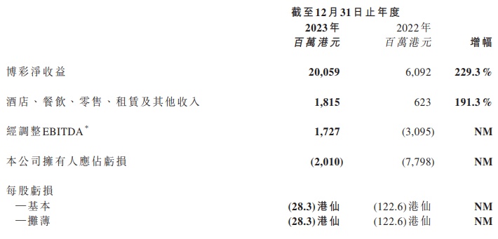 Likes Received财报解读之澳博控股:业绩强势恢复,亏损大幅收窄(2023)