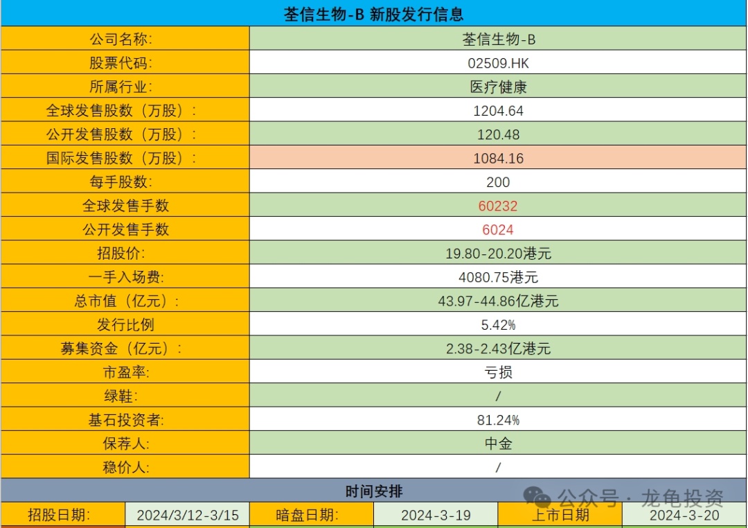 港股打新:荃信生物-B IPO 分析及申购计划