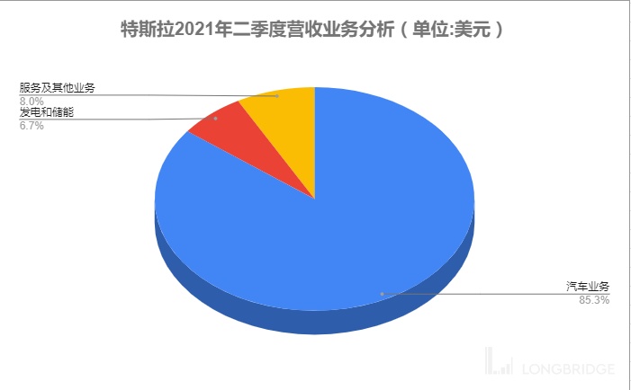 特斯拉核心业务收入主要分为三大块,汽车业务、发电和储能业务、服务及其他业务。