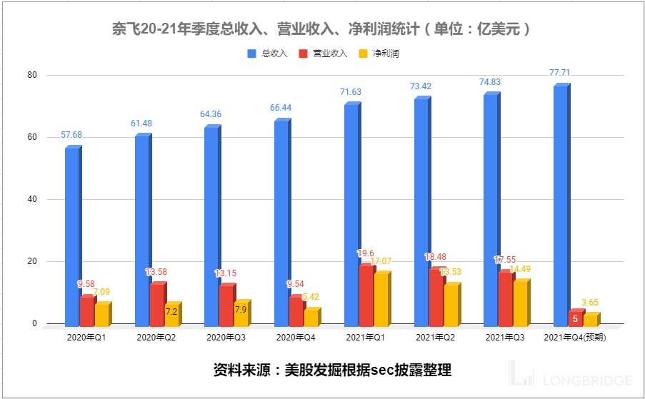 - 2021 年三季度,奈飞实现总营收 74.83 亿美元,同比增长 16%,超过华尔街一致预期的 74.8 美元;
