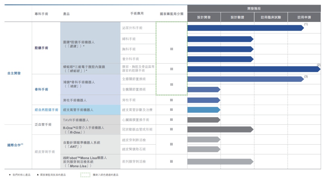 3 款旗舰产品:图迈(腔镜手术机器人)、蜻蜓眼(三位电子腹腔内窥镜)、鸿鹄(骨科手术机器人),均已获准进入 “绿色通道”。