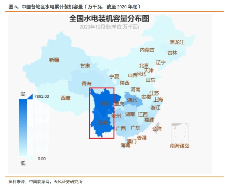 而我国水电装机主要就是集中在水流量充沛的云南、四川,没水=没电。