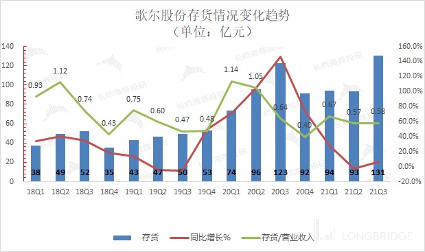 从存货/营业收入指标看,歌尔股份本季度相对平稳维持在 0.58,表明公司整体存货水位保持较合理的位置。