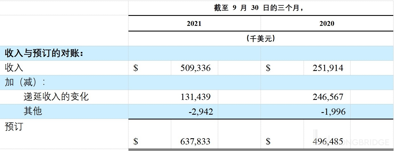 Bookings,定义为收入加上期间递延收入的变化和其他非现金调整。Bookings 等于用户在给定的计量期内购买的虚拟货币数量。我们认为,预订可以更及时地表明公司的运营结果趋势,而这些趋势不一定反映在公司的收入中,因为公司在付费用户的估计平均生命周期内确认了大部分收入。递延收入的变化构成了从收入到预订的调节差异的绝大部分。