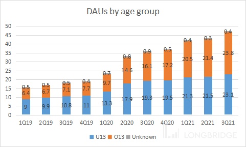 总体来看,本季度 Roblox 的业绩保持稳健增长,核心点在于用户的增长依旧保持在不错的水平,大于 13 岁的群体增量在不断扩大,有助于公司破圈,而破圈以后的运营会成为公司接下来的重中之重。