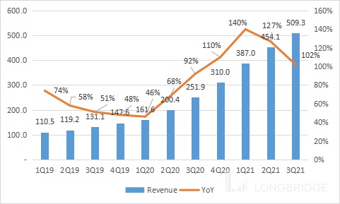 - 收入比 2020 年第三季度增长 102% 至 5.093 亿美元