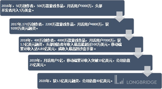 至此,Roblox 平台成功的两大关键点就开始发挥作用,即是:开放经济与放权(放权给游戏开发者),公司在开放平台以后,经营数据爆发式增长。