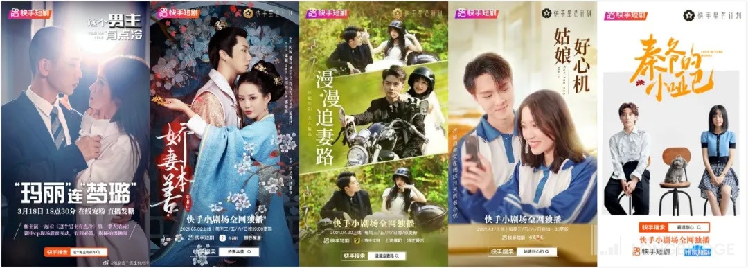 其中快手短剧内容的 DAU 渗透达到 2.3 亿,即 72% 的快手日活用户会看短剧。这个由快手首创的内容形式(一两分钟一集,十分钟看完一季的短剧形式,内容通常是爽片如高甜,校园,古风,逆袭等)请允许我比较直白的说,短剧就是又土又上头的电视剧的浓缩版。表演浮夸,做作,但是偏是让用户接受这种尬。剧情极端套路:遭受磨难,背叛,刁难,逆袭,坏人不得好报一套让观众爽。角色设定同样模式化:甜妹,霸道总裁,穷小子,宠妃,高频戳爽点。