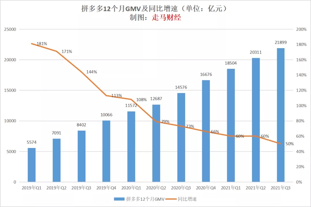也许你会说营收增速不能说明拼多多的平台规模及走势,下面我们来看看 GMV 的表现。