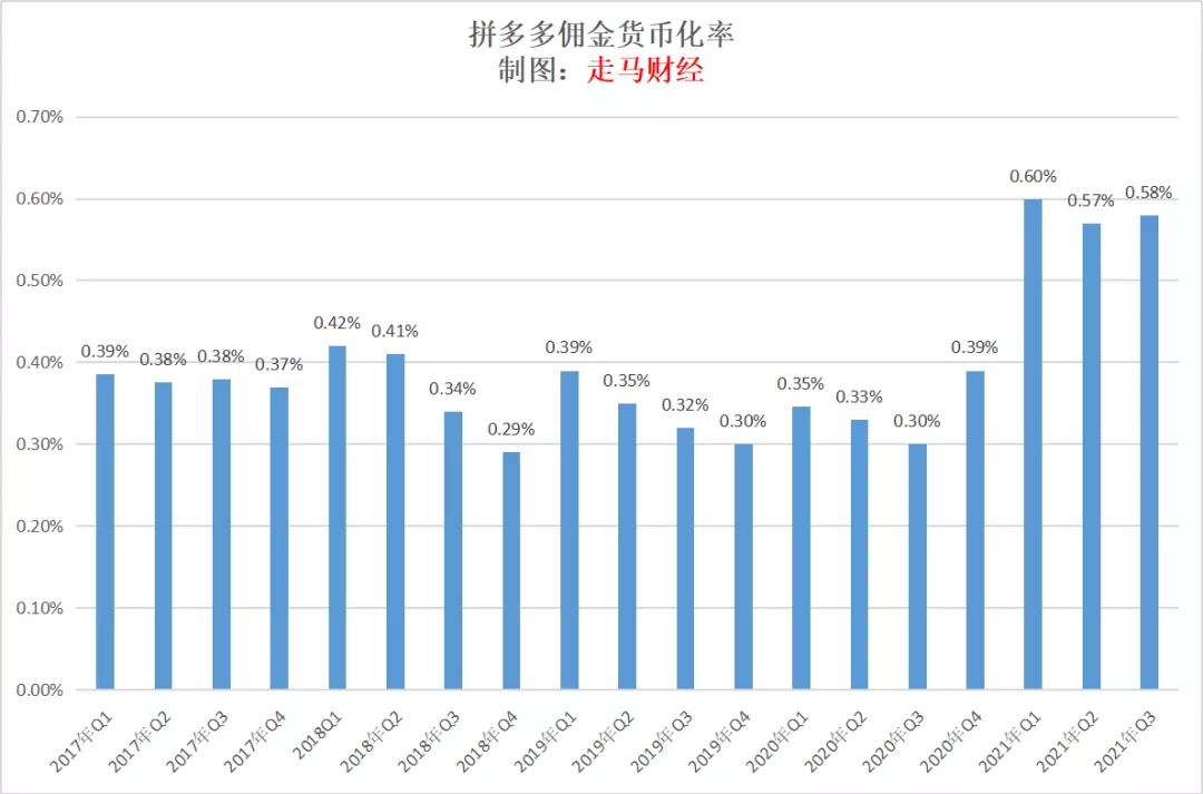 计算季度 GMV 我们需要先看一张图,过去几年每个季度拼多多佣金业务的货币化率。最新的 Q3 大家可以忽略,是计算出来后更新上去的。