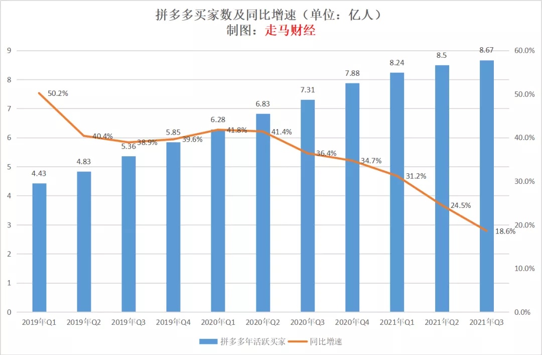但是,拼多多的买家数在如此高的基数下,仍然在增长,新季度环比增加 1740 万新用户,同比增速仍达到 18.6%。