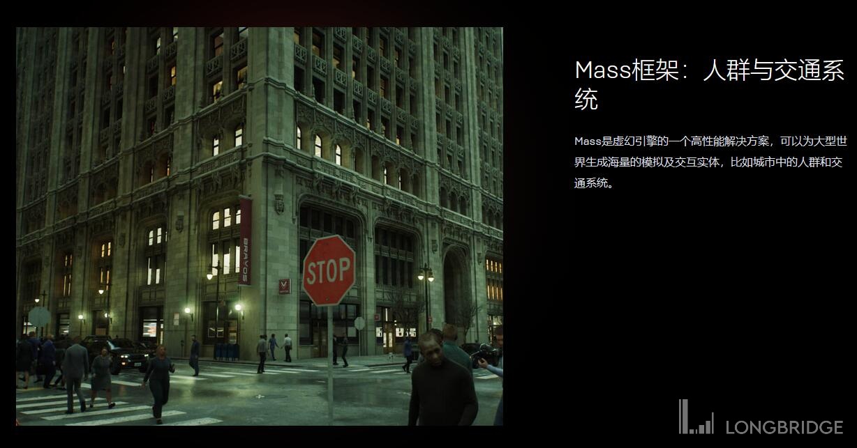 在 Mass 框架下,虚拟世界中繁杂的人群和车流都可以依靠该框架智能生成,而非需要像以前那样由设计师们挨个设计。这个技术可以拓展元宇宙的内容边界,在虚拟世界中可以随机生成海量的虚拟 AI 成员,得以快速完成世界的构建。