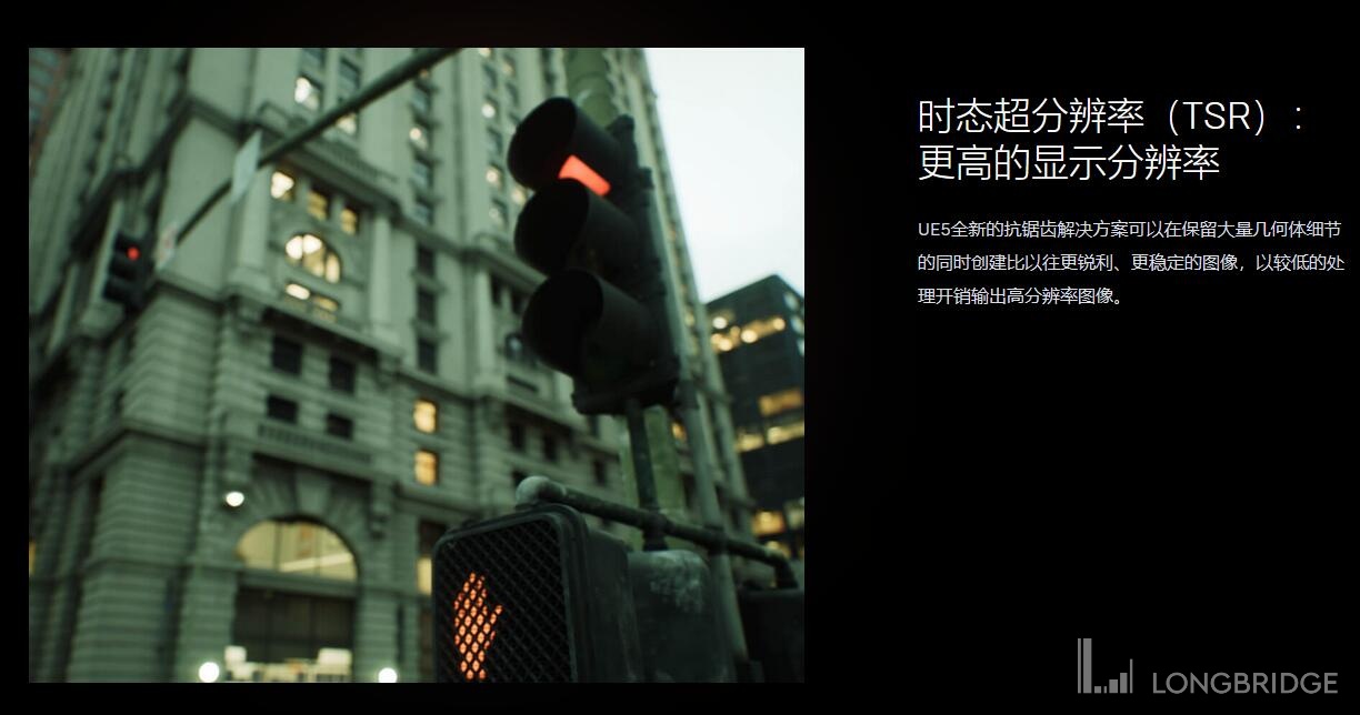 虚幻引擎 5 的抗锯齿能力相比前几代更加强悍,在处理大场面的时候不会导致整个画面崩掉。