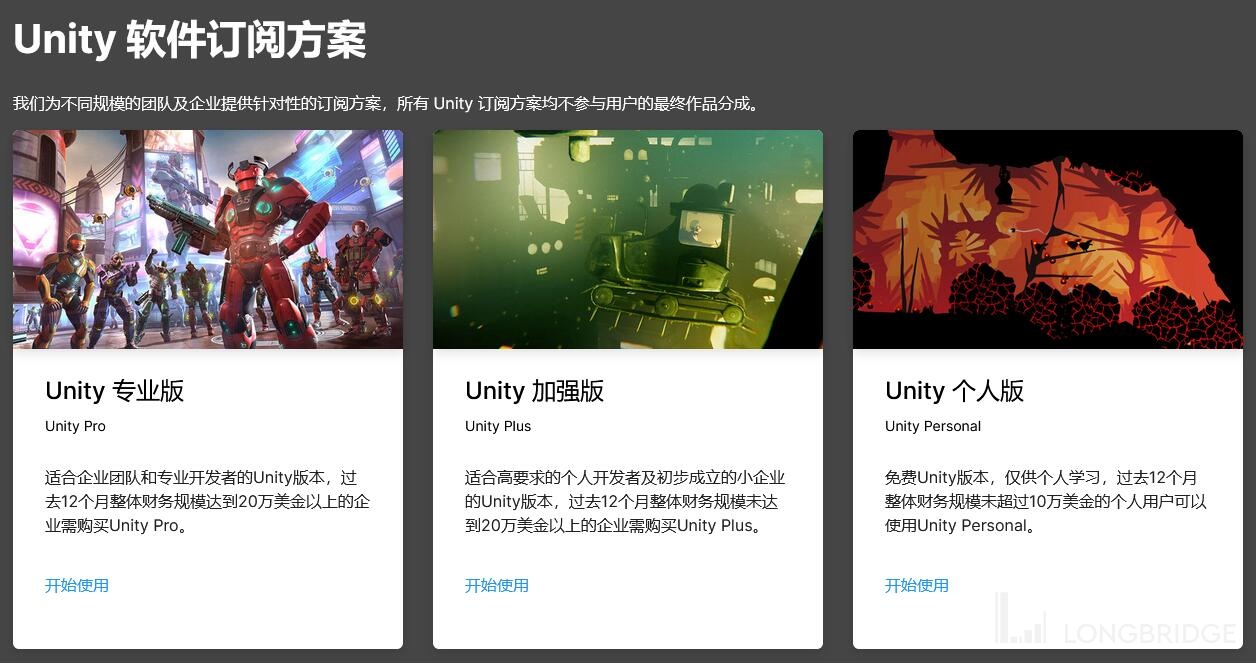 针对于个人学习用户,Unity 个人版是免费面向市场开放;面向初创专业开发者或是初创公司,Unity 加强版一个席位售价约 3100¥/年;面向公司级别的制作,Unity 专业版一个席位售价约 13800¥/年。Epic 的收费模式是游戏收入抽成,所以从 Unity 的按人头收费模式来看。正如其名,Unity 打的是人海战术,在给大客户开发定制服务的基础上,靠着广阔的兼容性来吸收众多中小型开发者。