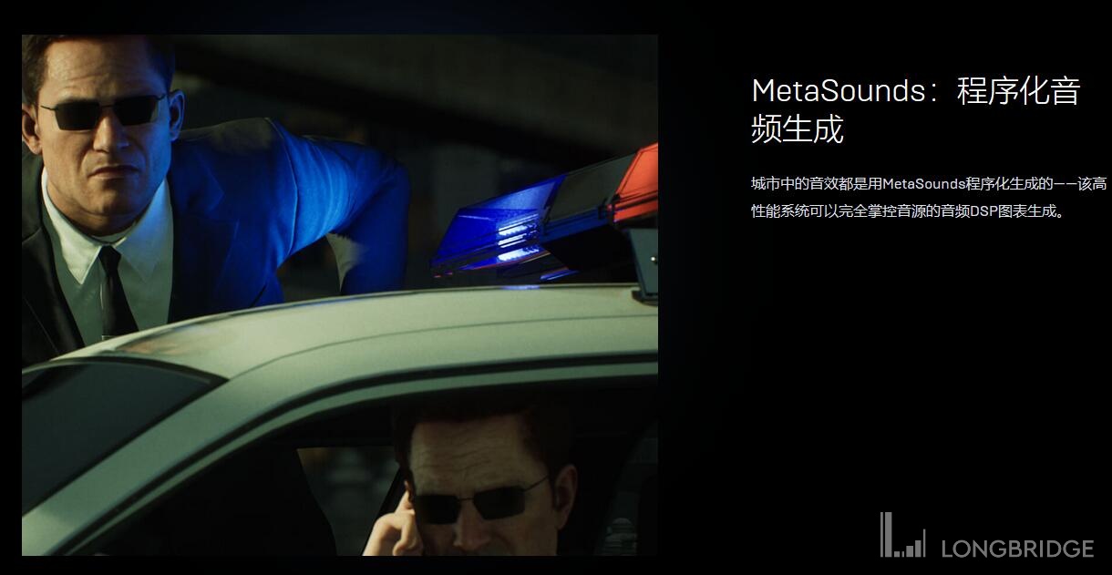 MetaHuman 和 MetaSounds 能程式化生成次时代数字化人类形象和环境音效,减少游戏后期制作的压力,且该技术的模拟生成具有交互性,会依据不同建模部分来进行相应的模拟反馈,达到每一个人物和声音效果既贴合游戏又很难重复。