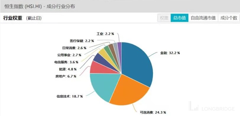 从恒生指数行业权重来看,房地产 + 信息技术两个板块占权重比超 25%,两个板块相继大幅调整,恒生指数表现不佳也在情理之中。