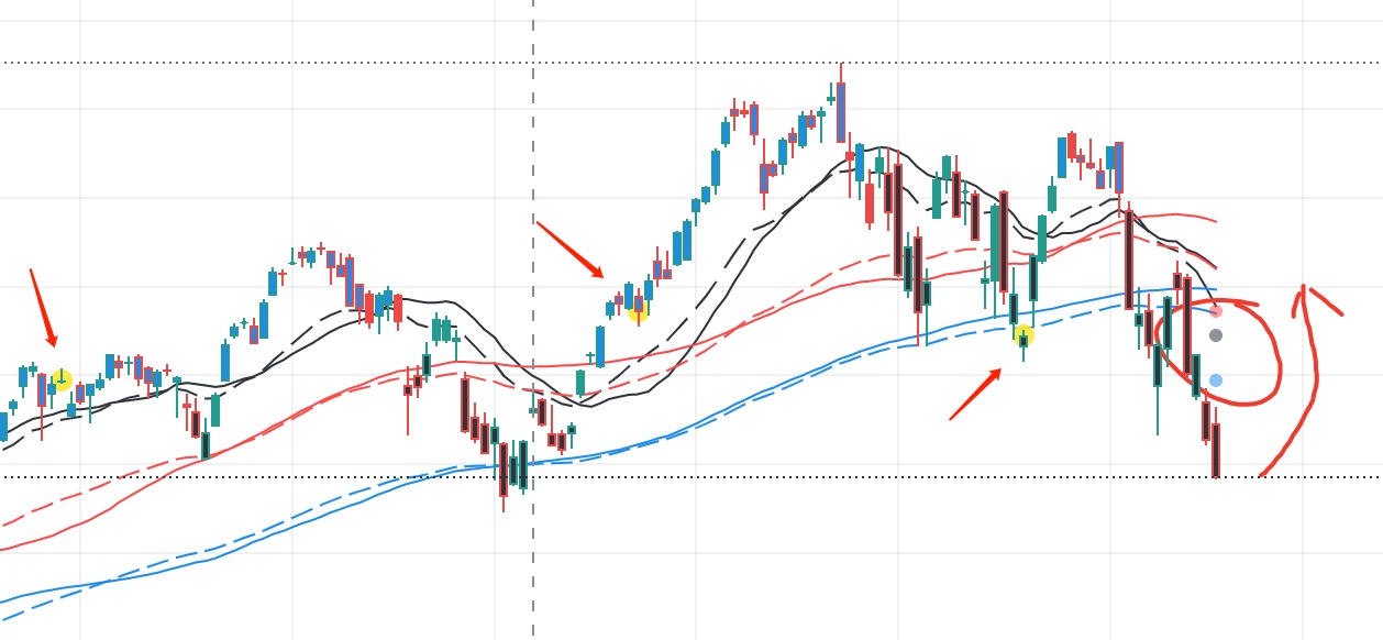 而纳指现在基本算是废了,已经跌破牛熊分界线,短期和中期均线向下交叉,当前指数低于 3 个抵扣价。除非向上跳涨到 15000 点,但是可能性大吗?