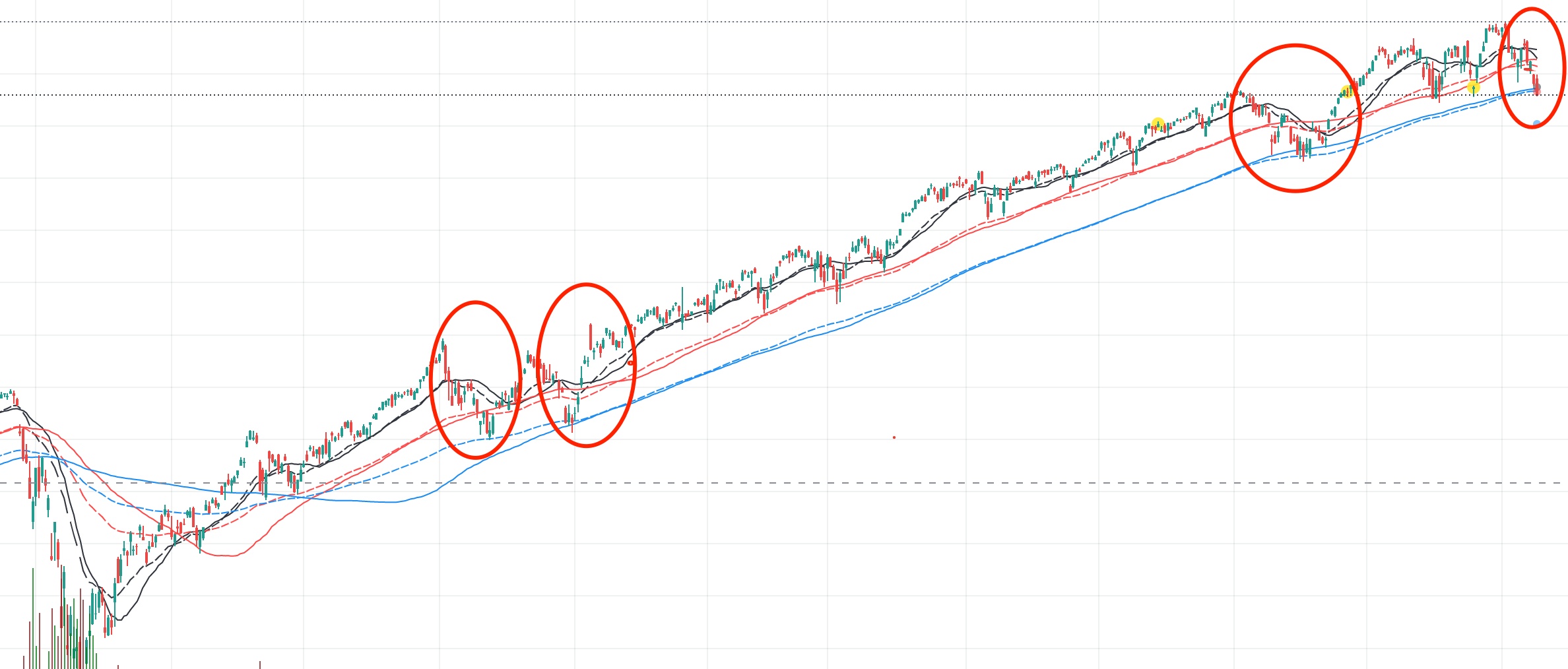 昨天刚表扬了 $Tesla(TSLA.US) ,今天就跌破 1000 了。标普 500收跌 0.97%,11 个板块只有公共事业微涨,其他全部下跌。标普 500 再次挑战 120MA,前后总共 4 次了,这次能不能站的住呢? 反正现在看起来不太乐观,下跌还没跌到位,但是继续跌就跌破 60MA 抵扣价,就剩一个 120MA 支撑。