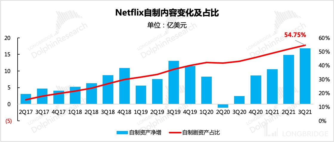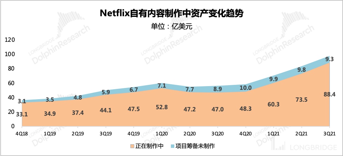 再来看奈飞引以为傲的自制内容资产,三季度自制内容(业绩快报不披露,四季度最新数据需要等上交 SEC 的完整财报)占比进一步提升至 54% 以上。在全球大小内容公司纷纷亲自下场做流媒体平台后(比如迪士尼),未来奈飞获取他们授权内容的可能性也会越来越低。因此自制内容占比预计将持续走高。