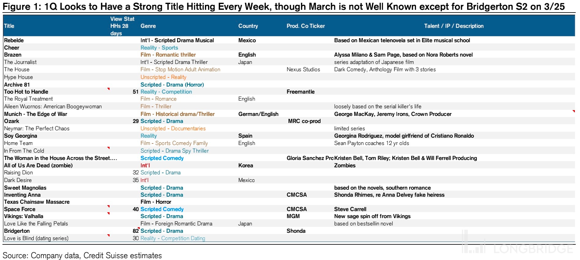 截至目前发布的排片上,虽然 1 季度也不乏一些大片,但从整体供给上预计有 22 部新片、12 部老片将播出,相比 2021 年同期的 43 部新片、18 部老片,确实内容供给上明显欠缺。后续我们将继续关注奈飞的排片是否有调整和填充。