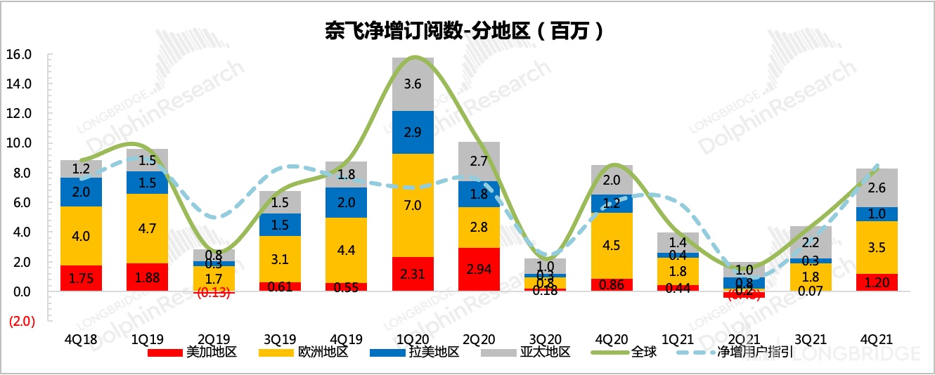 可能是考虑到内容供给巅峰期已过 + 竞争加剧,管理层对 2022 年 1 季度的用户增长并不乐观,指引 250 万,不仅低于前 3 年同期增长,也大幅低于市场预期区间 450-600 万。