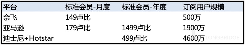 从几个巨头目前印度市场用户对比来看,迪士尼借助收购的印度本土流媒体 Hotstar,这巨大的基础优势自不必多说,但亚马逊的用户规模也在奈飞之上。而这两家的订阅价格都是远低于奈飞的,这也不难理解奈飞破例降价的举动。