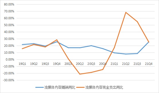 我们看到内容摊销同比和营业收入同比增速的剪刀口的话,无疑 21 年 Q4 的趋势是在恶化的。当然内容摊销有去年疫情的因素存在,但是成本压力的提升,加上公司给出的新增付费用户的不及预期,无疑更加明确了为何公司无法在 2022 年实现经营利润年增 3% 的目标,那么最终结果会是净利润的未来增速下调。