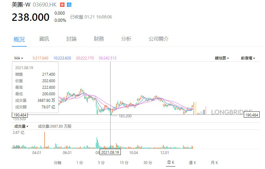以上圖為例,$MEITUAN(03690.HK) 3 次皆不穿 190 元,此位置為極大的支持