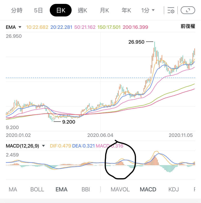 當 MACD 以及 EMA 同一時間指向同一個方向,配合成交量以及突破關鍵點的阻力,該突破會是最強最厲害的
