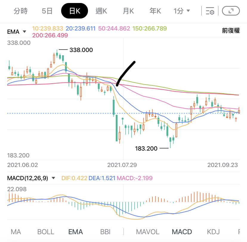 上篇文章已經說明了最基本的圖表技術分析,這篇文章會分享一些在下常用但重要的技術指標。但是,很多時候如果選用太多的技術指標,反而會無所適從,因為會出現極多不同的訊號,但同一時間又不知如何衡量不同訊號價值。在下經過不同的試驗,分析高手操作,以及閱讀不同高手的書籍後,發現大部份的高手大多只會選用一至兩個技術指標。更厲害的高手,基本上只用支持阻力成交量以及關鍵點,便可以無往而不利。因此,極力建議閣下最好簡化技術指標,去蕪存菁,反而可以得到更有清晰的圖表指引。而在下一般只會用兩個指標,分別是 MACD 以及 EMA 。