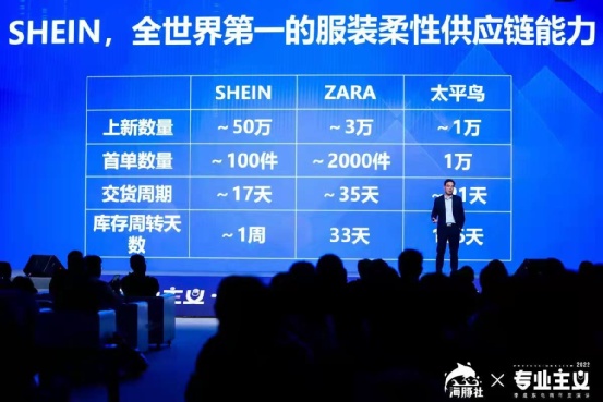 Shein 的崛起,是中国服装供应链对全球市场的降维打击。shein 的崛起,靠的不是广告营销,而是效率比 zara 快一倍的供应链。Shein 在今年 4 季度已经停止了投放,完全靠复购增长,一般的公司有 20% 的复购。Shein 的 90 天的复购率,2018 年 23%,2019 年 30%,2020 年 42%,2021 年是 60%。