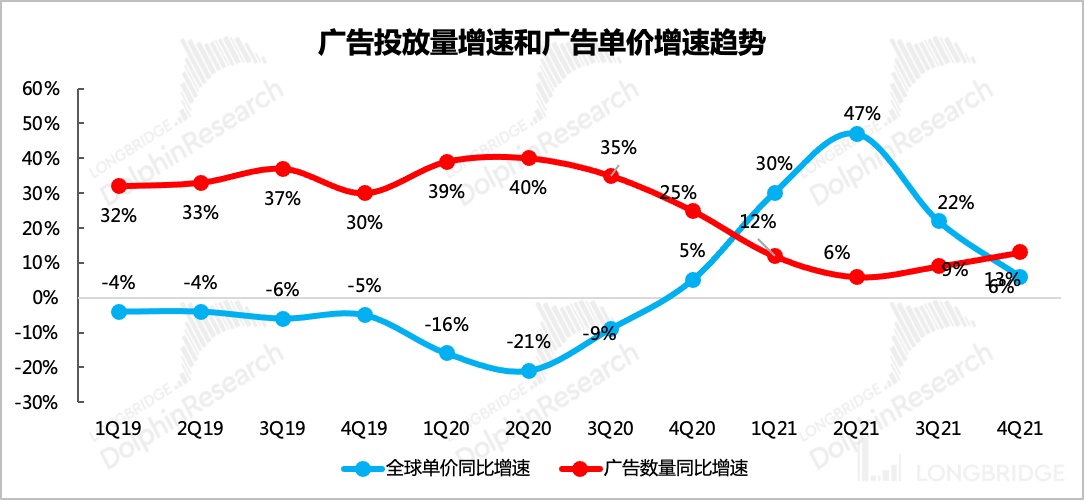 四季度广告单价同比增长 6%,投放总量增长 13%。量的驱动影响开始大于价格。