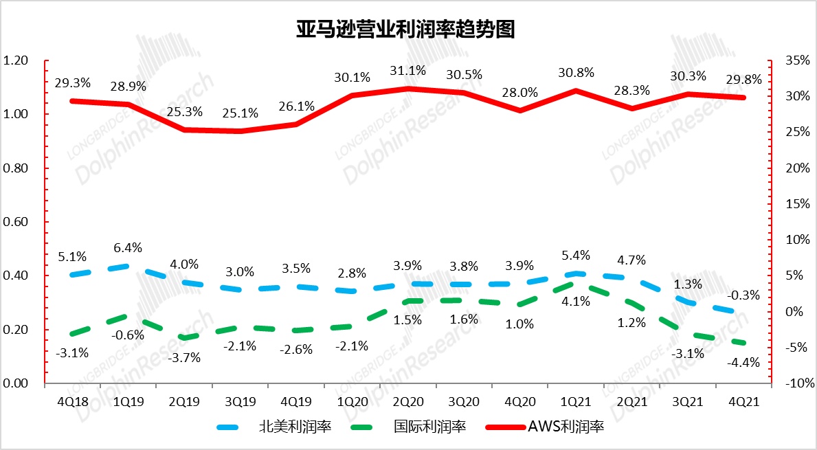 本次财报验证也加强了海豚君对亚马逊的推荐逻辑,从利好的角度:长期来看公司的营收结构会逐渐优化,从赚辛苦钱的零售,转变为高毛利的服务性收入。中期来看,公司在线上零售的竞争格局优异,此轮压制盈利的投资周期再重回规模经济后,会转变为利润释放。短期来看,公司通过提升运费和仓储费的措施也能转移成本压力,保障 1Q22 的盈利。