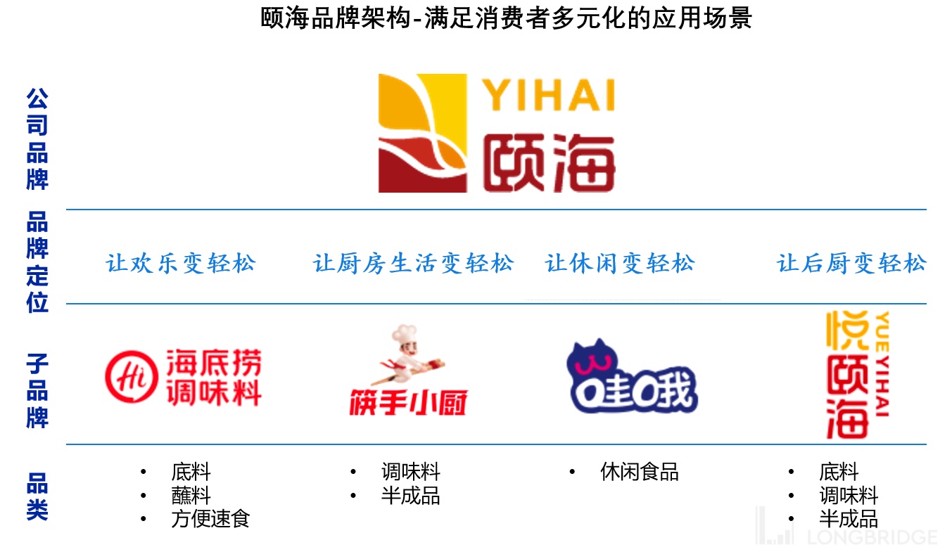 目前,公司已是一家集研发、生产、销售于一身的复合调味料供应商,主营产品包括火锅调味料(包括火锅底料、火锅蘸料)、中式复合调味料和方便速食。公司拥有海底捞(四川海底捞授权公司)、筷手小厨、哇哦、悦颐海等多个品牌,持续进行产品创新,扩充产品组合。