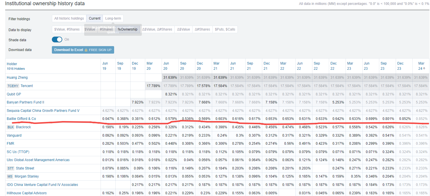 另外一个砸盘拼多多的说法,是说大型成长机构 Billie Gifford 再砸盘出货。