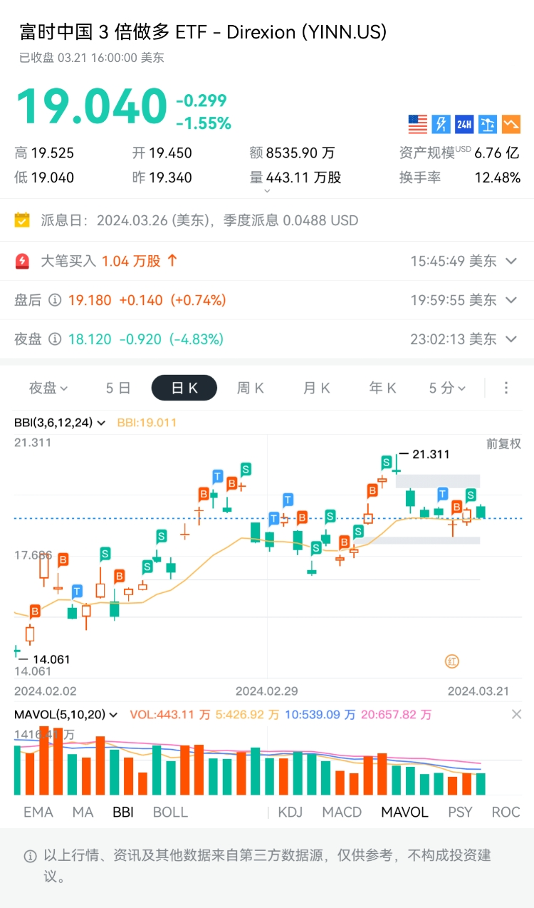 Options$Direxion FTSE China Bull 3X(YINN.US)已经挂单 18 块