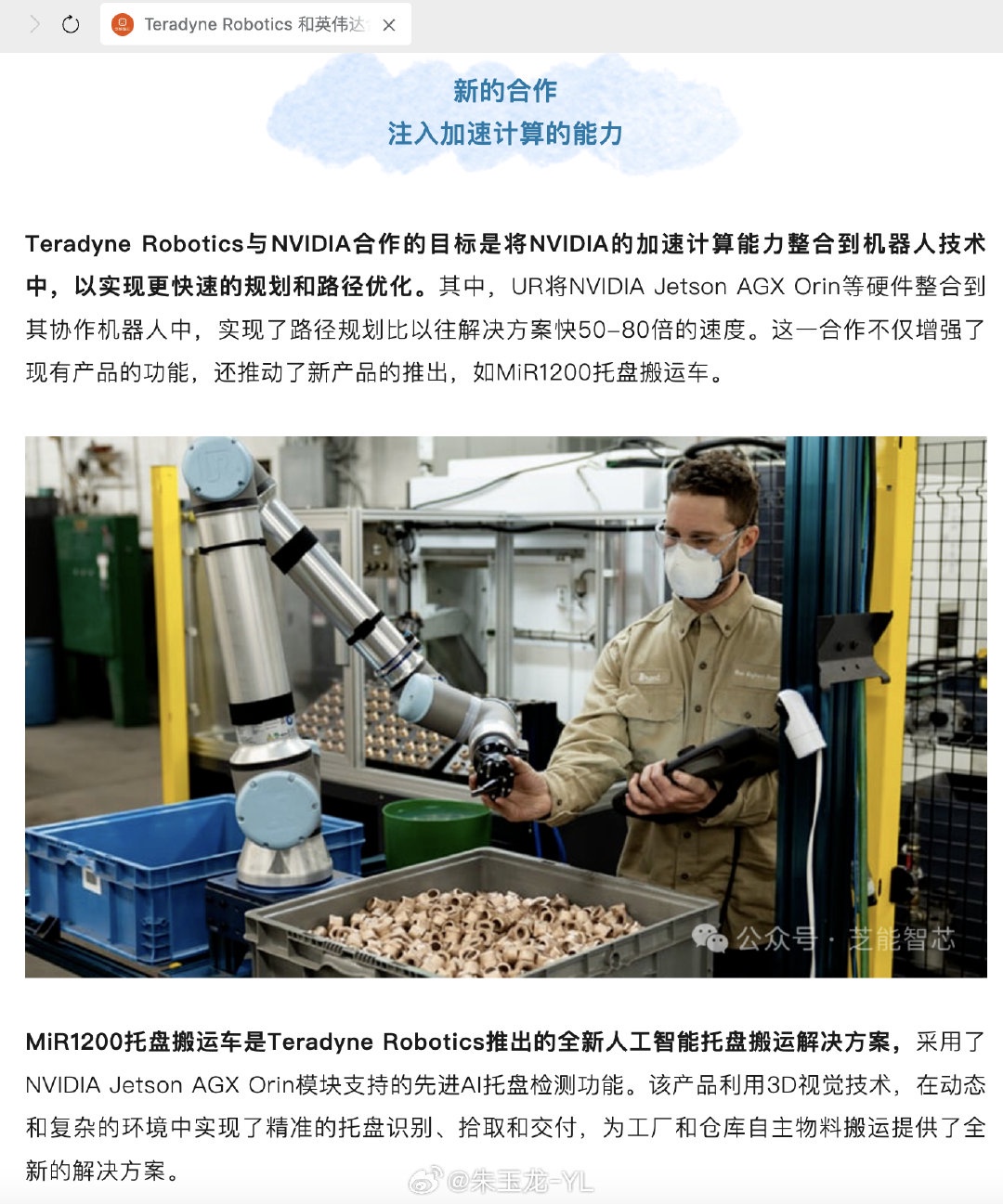 在工业场景里的协作机器人,如果配合新的机器人平台,这个智能化的空间在慢慢拉高天花板