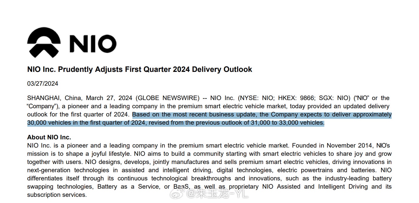 蔚来调低了一点点,一季度 3 万台