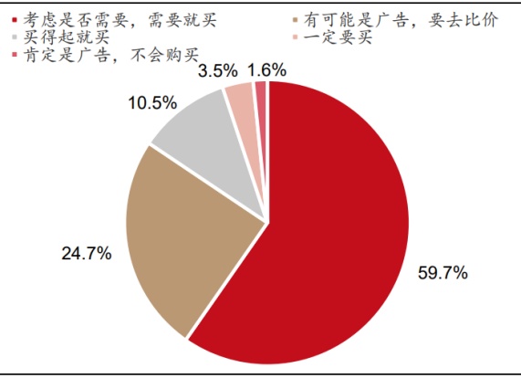 据艾瑞咨询调查结果显示,超过 92% 的受访者表示将更加谨慎消费,大部分消费者表示会更理智地看待卖家宣传,通过多方对比,减少冲动消费,理性购买真正适合的产品。此外,有专业背景和数据支撑的推荐者及专业机构或人士测评推荐最受消费者信赖。