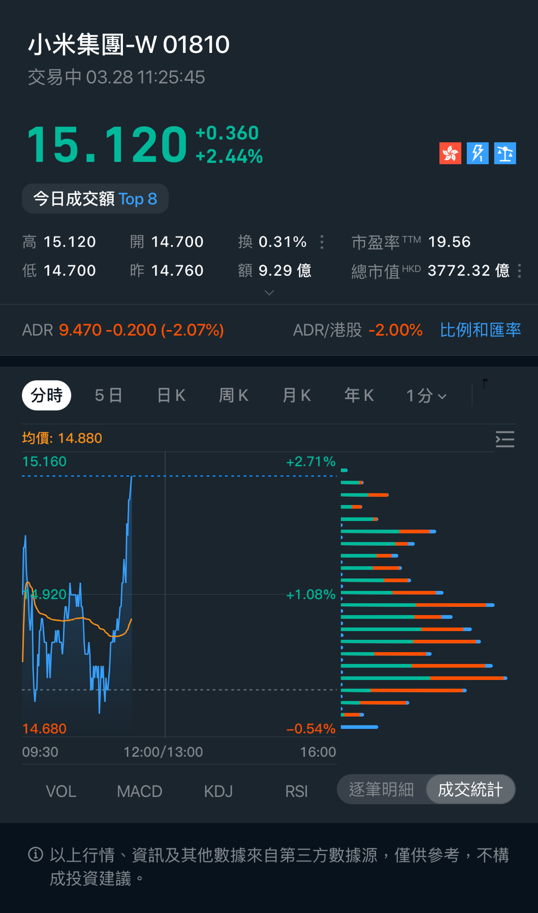 Buffett Apprentice$XIAOMI-W(01810.HK) 飙了!@糧廠研究員Will