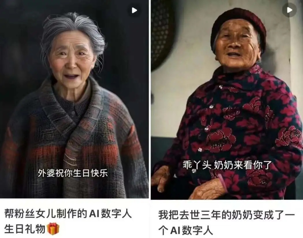 One of the earliest AI "resurrection" videos to gain public attention in China was created by Bilibili UP 主 Wu Wuliu, who showcased his AI-generated grandmother. Using her phone recordings for voice synthesis and ChatGPT to learn her speech habits, Wu called the result a "digital life." The video of the digital grandmother speaking in dialect garnered nearly a million views.