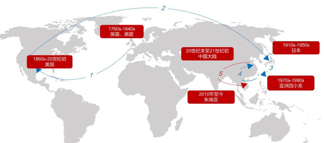 The global evolution of the textile industry has revolved around the principle of labor cost efficiency in light industries: Since the invention of the steam engine, production has shifted from Europe and the U.S. to Japan, Hong Kong and Taiwan, South Korea, mainland China, and now Southeast Asia.