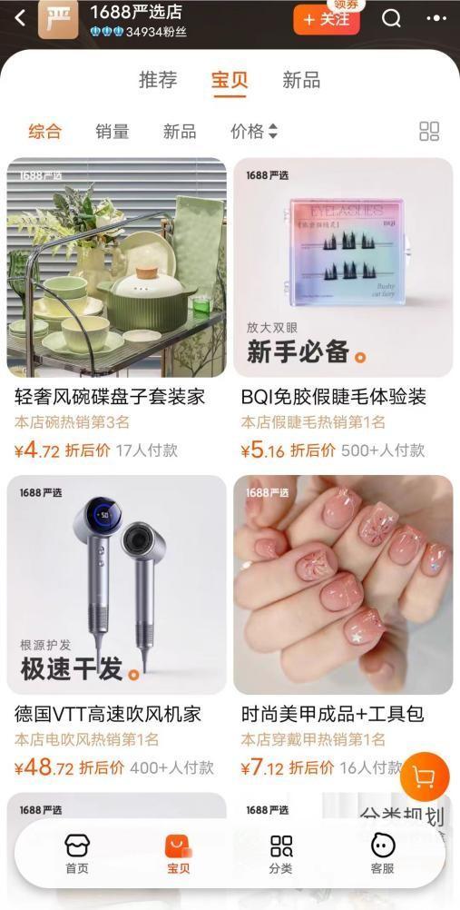 According to reports, the product categories in 1688 Premium Selection stores mainly consist of daily necessities and household items, reflecting that the primary target consumers after 1688's entry into Taobao are the "post-95" or "post-00" generation. This move undoubtedly accelerates 1688's alignment with "Gen Z" e-commerce, attracting attention from groups like the new middle class and sophisticated moms. Additionally, 1688's products are positioned in the mid-to-high price range, adding a layer of quality assurance to its inherent "discount" appeal.