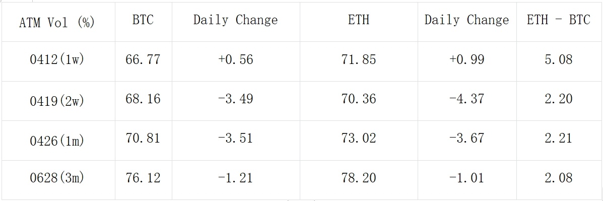 SignalPlus Volatility Column (20240410): The range of fluctuations tends to narrow, with a large number of BTC call options sold at the end of April.