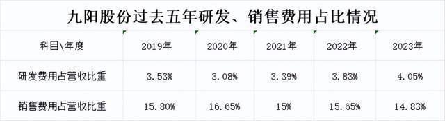 However, despite its strategic emphasis on R&D, Joyoung's actual R&D investment remains relatively conservative. From 2019 to 2023, Joyoung's R&D spending was steady, slightly over 4% in 2023, while sales expenses 长期 remained high at nearly 15% of revenue. Increasing R&D investment while reducing sales expenses might be key to Joyoung's turnaround.