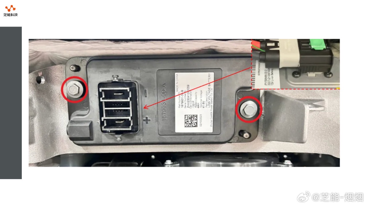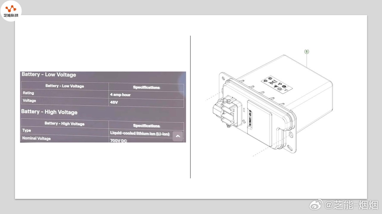Tesla's 48V battery system in Cybertruck, this battery is currently 48V, 4Ah, with an overall energy of 192Wh. This marks another technological evolution in the automotive industry since the voltage was upgraded from 6V to 12V in the early 1950s. The application of this technology is not limited to Cybertruck but also covers models like Model Y and Semi, with batteries manufactured in China. The 48V system reduces the complexity of the vehicle's low-voltage wiring harness, saves space, and lowers the complexity of wiring harness operations by reducing current and adopting patented wiring technology, thereby improving automation efficiency. Additionally, Tesla simplifies the maintenance process by color-coding (blue connectors for the 48V system).