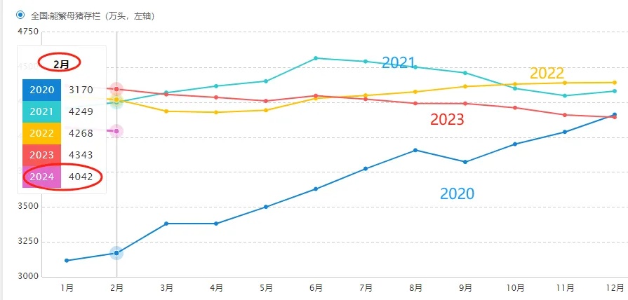 虽然 2 月底已降至 4042 万头,但距离 3900 万头左右仍有不少空间。