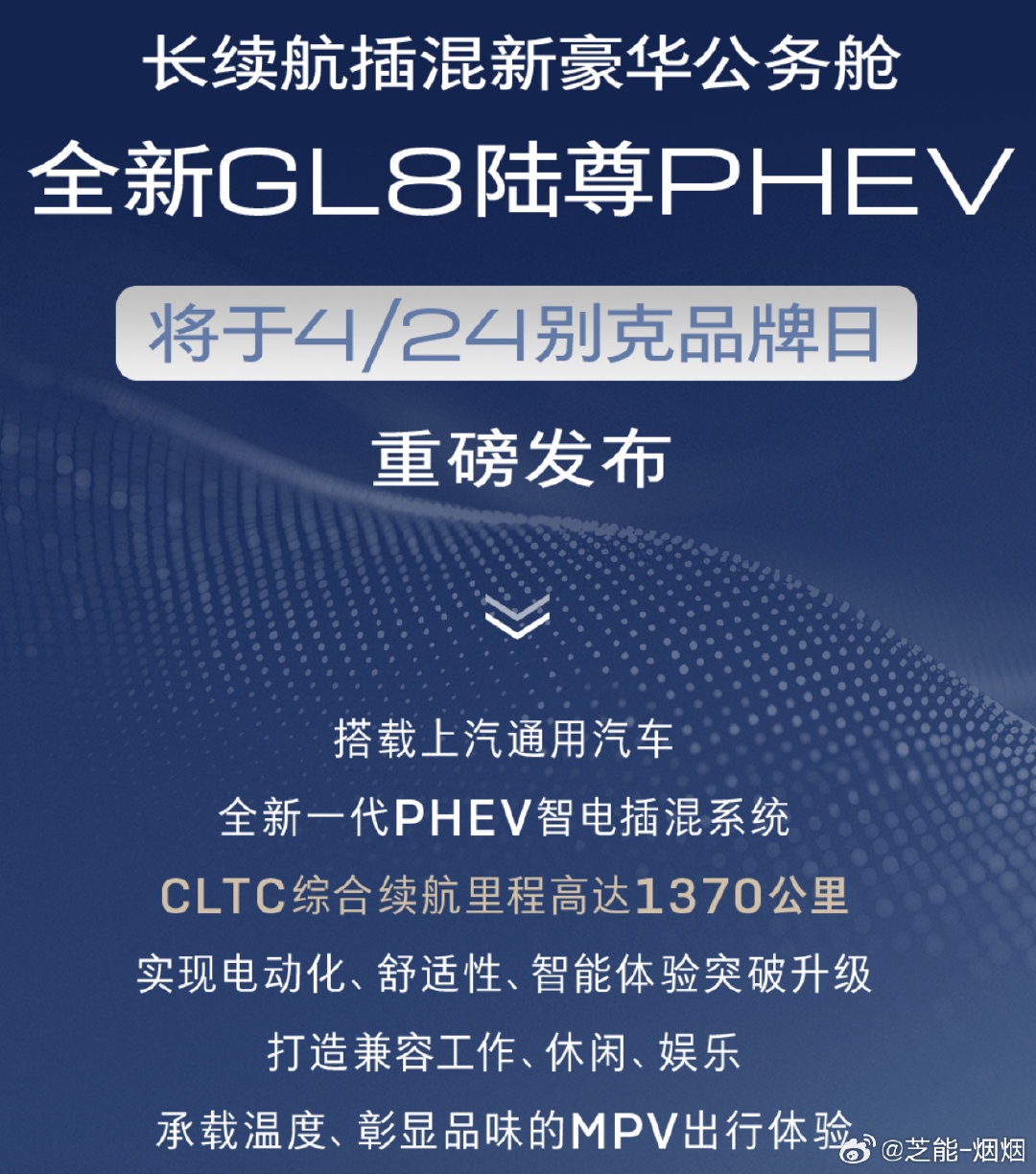 The all-new GL8 Landun PHEV will be grandly launched on April 24 at the "Buick Brand Day"! The new vehicle is equipped with SAIC-GM's next-generation PHEV intelligent plug-in hybrid system, boasting the longest comprehensive range of 1,370 kilometers among current plug-in hybrid MPVs. It adopts the same design as the Century model and features the industry-exclusive VIP flexible console, rear cabin smart screen, and all-new Nappa leather feather-like aviation seats, achieving a comprehensive breakthrough and upgrade in electrification, comfort, and intelligent experience.